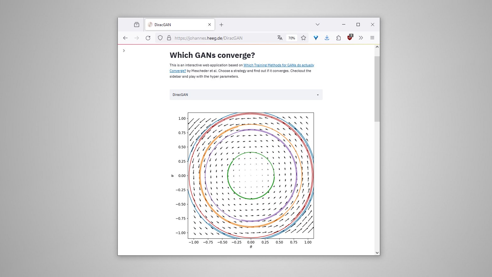 An interactive web application based on Which Training Methods for GANs do actually Converge?